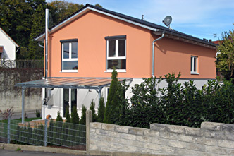 auf einem kleinen Eckgrundstück in Schrobenhausen-Steingriff entstand ein schmuckes Einfamilienhaus im KfW-70-Standard.